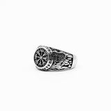 The Reine Stainless Steel Ring is a detailed men's ring with a circle face and bold styling. This unique piece is available in 3 sizes and is for the man who likes to make a statement.