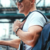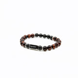 The Ely Beaded Bracelet is a statement piece crafted from quality Onyx and Tiger Eye bead styles to suit any outfit. This men's beaded bracelet presents its quality in the weight of the beads used, as well as the engraved stainless steel 'Hector Kilgore' decorative decal.